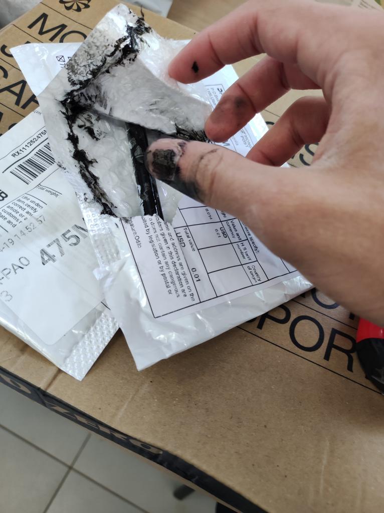 Když jsem balíček otevřel, byl celý špinavý - celá propiska vytekla, hrůza!