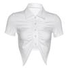 Simple White Shirt Women's Summer Short Irregular Pleated Open Navel T-shirt