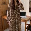 Retro elegantní květinové šaty s dlouhým rukávem, výstřihem do V, pro volný čas, dlouhé elegantní šaty s potiskem