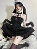Tmavě křížové černé minišaty Vintage sexy špagetový pásek Šaty s rozparkem a vysokým pasem Dámské šaty Goth Party Club
