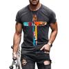 Nové letní pánské módní tričko Osobnost Vícebarevné pánské tričko s křížovým potiskem