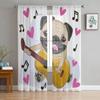 Mops Pes Hudba Legrační průsvitný závěs do obývacího pokoje Voál do okenních žaluzií Ložnice Tyl Závěs Kuchyně Cortinas Záclony do sálu