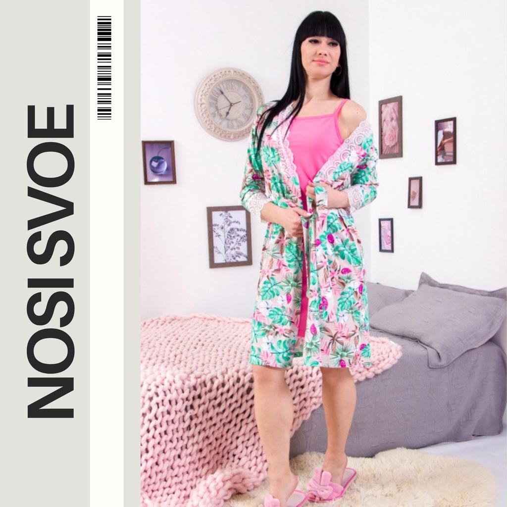 Dámská souprava, skládající se z županu a košile, je elegantní kombinací pohodlí a stylu pro útulný domácí oděv.. Tato sada, vyrobená z měkkých, prodyšných materiálů, poskytuje příjemný pocit na pokožce a svobodu pohybu.. Župan má pohodlný design s páskem pro nastavitelný střih, zatímco košile má klasický střih s knoflíky, což vzhledu dodává něhu a eleganci.. Ideální volba pro pohodlnou relaxaci doma a klidné večery.