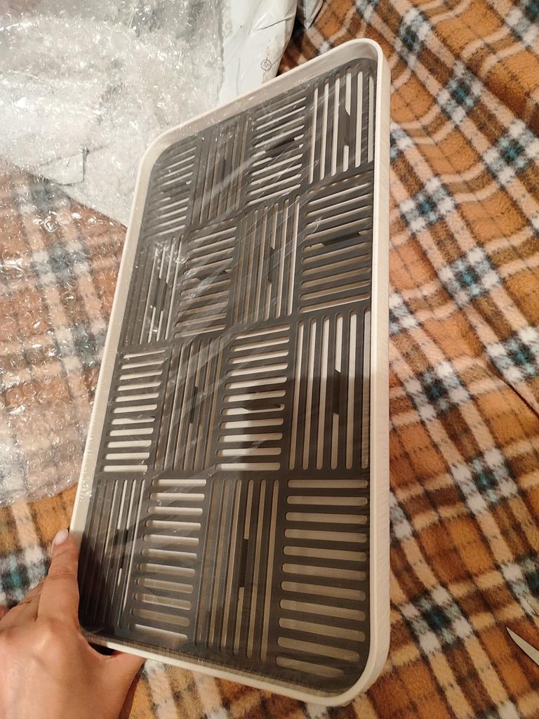 Plastový odtokový stojan, hrnek na nádobí, odtokový tác, dřez, stojan na nádobí, pracovní deska, kuchyňské třídění, stojan na vodní filtr, kuchyňské potřeby