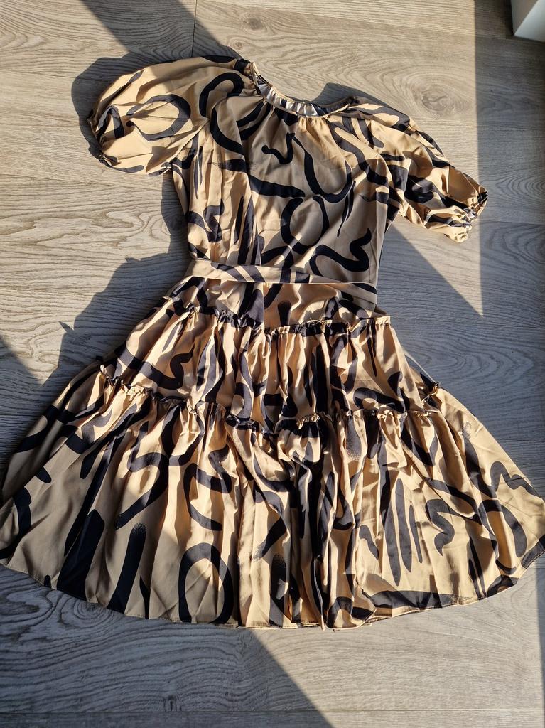 Velmi stylové šaty, lze je doplnit různými způsoby. Mám 105/85/103 cm a je v nich spousta místa. Dodává se v 1 velikosti, velmi trendy design. Nabírané rukávy, dodáváno s látkovým páskem, lehká látka. Rychlé dodání a skvělá kvalita .Šťastné nakupování!