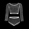 Dámská sexy sada spodního prádla ze síťoviny s dlouhým rukávem, sada spodního prádla s rybí síťkou, sexy sada spodního prádla noční prádlo