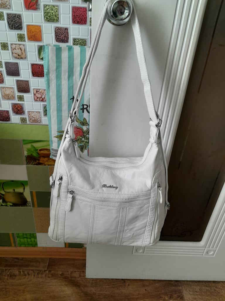 Výborná taška👍 měkká, lehká, mnoho přihrádek různých velikostí, zipy jsou dobré. Nepříjemný zápach není.