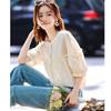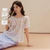 Mishow Dámská halenka 2023 Léto Nový korejský styl Výšivka Čtvercový výstřih Bufované rukávy Květinový Dojíždění Ležérní top MXC38X0092