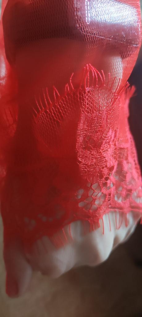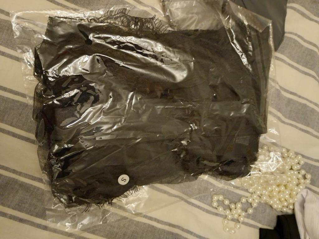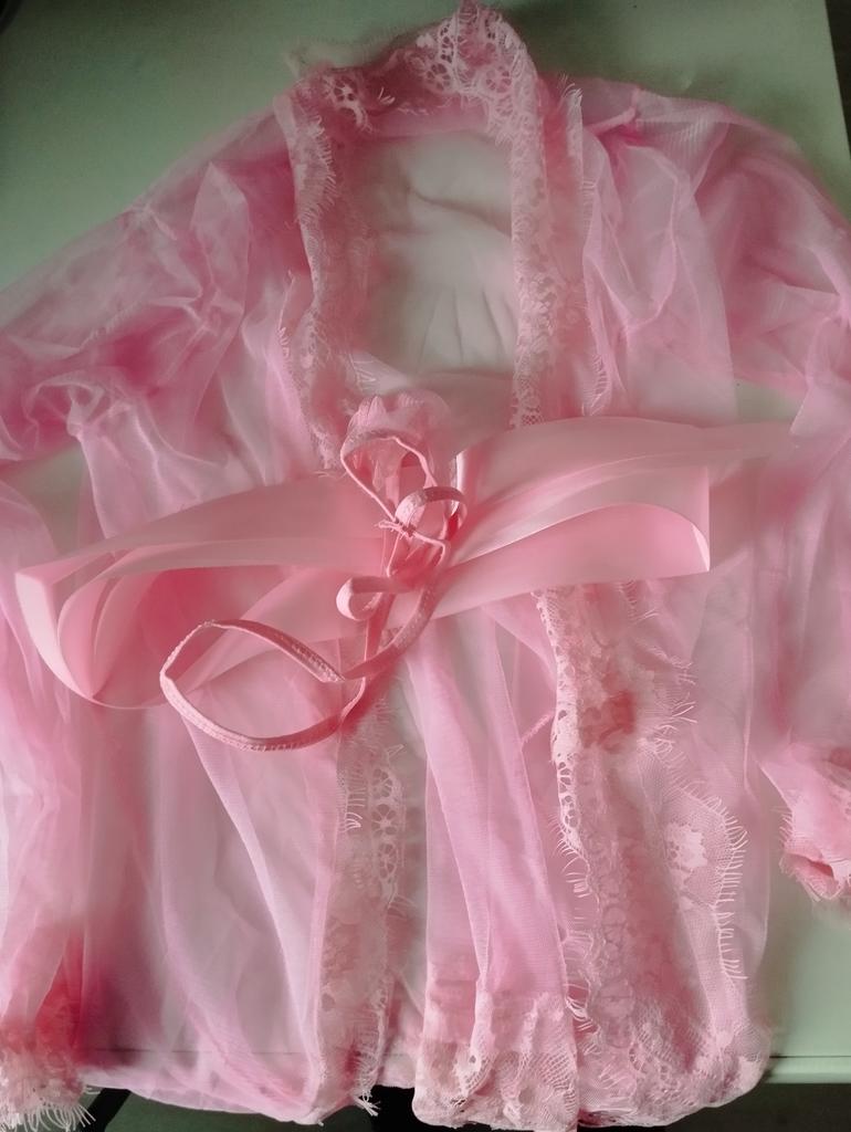 Ne kompletní sada. Je tam pouze župan, chybí pásek a kalhotky. Kvalita není moc dobrá, látka je velmi tenká a krajka na všem ulpívá.