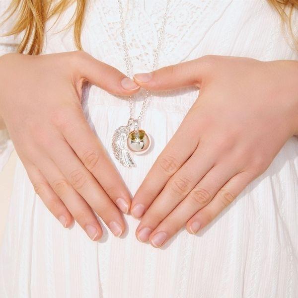 Těhotenský bolela s dvojitým přívěskem s andělským křídlem a zlatým srdcem