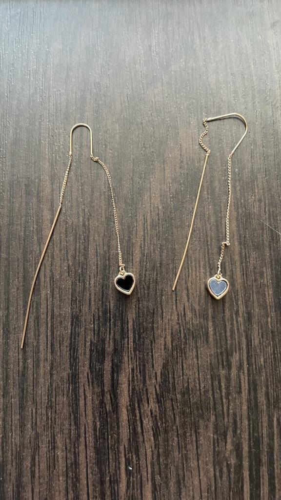 Náušnice s dlouhým střapcem černé srdce