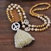 Svetrový řetízkový přívěsek Ručně vyráběné dřevěné korálkové střapce a mírový talismanový přívěsek dlouhý náhrdelník řetízek žena