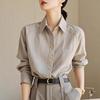 Dámská košile s dlouhým rukávem Temperamentní Tenká Modely střední délky 2025 Léto Nová Korejská verze Výklenkový smysl pro design Vázané dámské topy