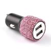 Nová nabíječka do auta Bling USB 5V 2.1A rychlý adaptér se dvěma porty Růžový dekor do auta Styling do auta Diamantové příslušenství do auta Interiér pro ženu