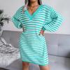 Podzimní a zimní dámské svetrové šaty Pruhované duté svetrové šaty Pletené šaty