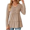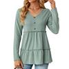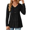 Jarní a podzimní dámská halenka s výstřihem do V Jednobarevný knoflík Patchwork Dlouhý rukáv Volný Top