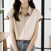 Proužkovaná košile Dámská Kontrastní Barva Ležérní Halenka Ženská Límec Krátký Rukáv Šik Košile Dámská Móda Volná Kancelářská Košile