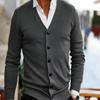 Pánský svetr svetr do V jednobarevný jednořadý Slim Fit Pletený elastický měkký dlouhý rukáv knoflíky ležérní teplý pánský svetr kabát
