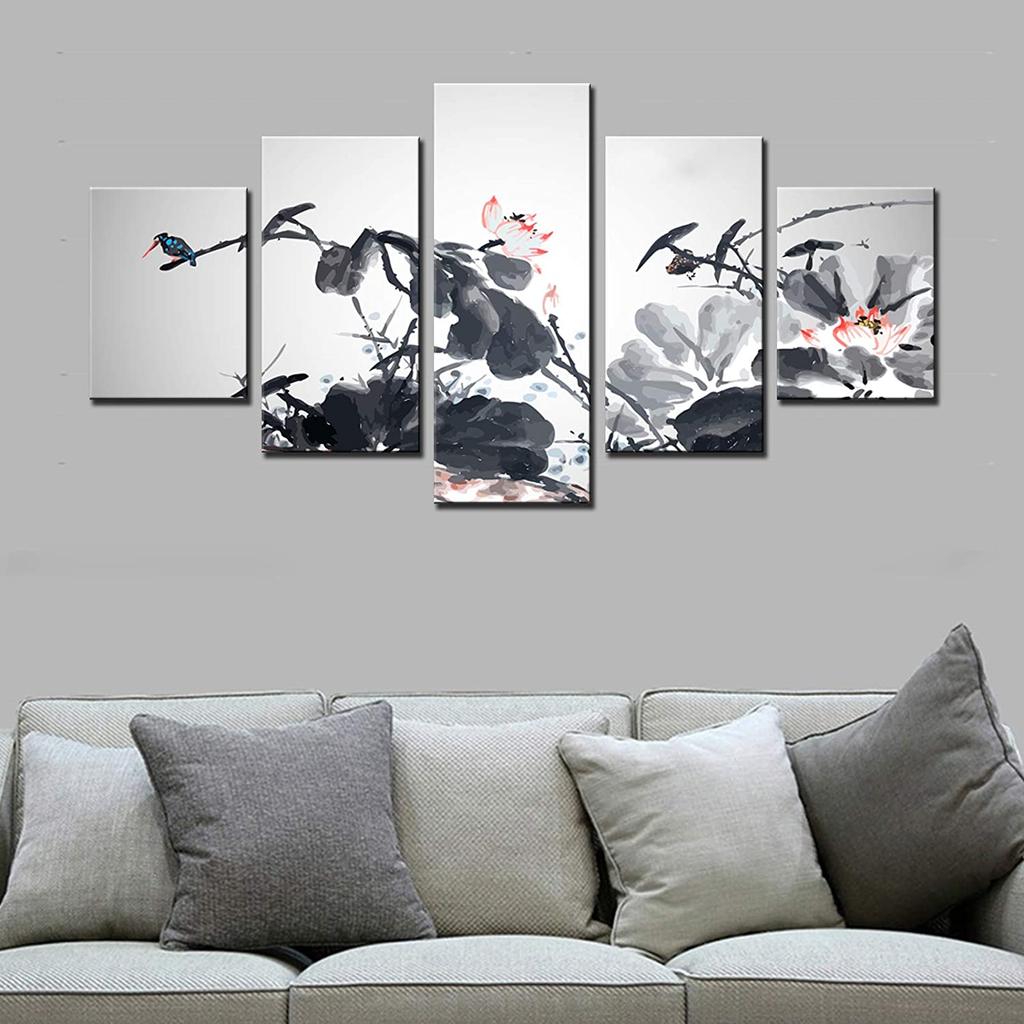 5 ks Rodinné Černobílé Obrazy Krajiny Lotosu Umělecké Obrázky v Čínském Stylu Plakát HD Tisk Bez Rámů 5 Panelů Dekorace Pokoje Plátno