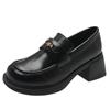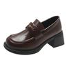 Dámské silné vintage kožené boty na vysokém podpatku se silnou podrážkou a boty britského stylu
