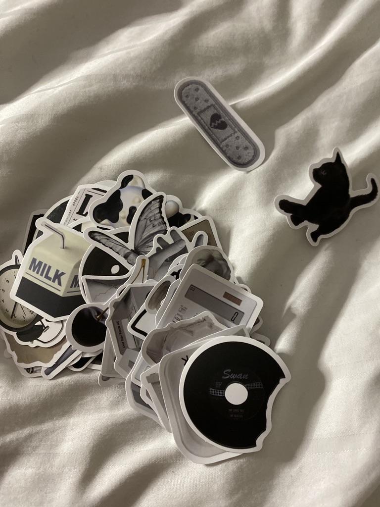 61ks Black White Jednoduchý styl Graffiti samolepka Auto kytara Kufr na notebook Obtisk