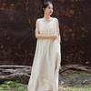 Johnature Ženy Ležérní Bandáž Šaty bez rukávů Letní Jednobarevné Oblečení Vintage Dámské šaty s výstřihem