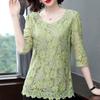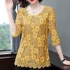 Dámské Oblečení Jaro Léto Krajka Halenka Košile Dámská Neformální Polorukáv Jednobarevné O Výstřih Květované Krajkové Topy Všechny Match Hollow Out