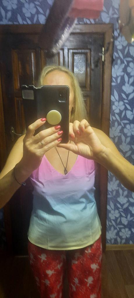 Tričko-halenka je vhodná pro velikost 50-52. Velmi pěkné ke kalhotám, džínům a šortkám, látka se nevytahuje, je jako měkká. Mějte na paměti, že nedochází k únikům. Udělám to sama, protože spodní prádlo je trochu vidět.