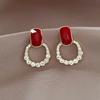2023 Nové náušnice Geometric Minors Design Sense Retro Evropská Francouzská Náušnice Prsten Ornamenty Všestranný temperament Síťované červené náušnice pro ženy