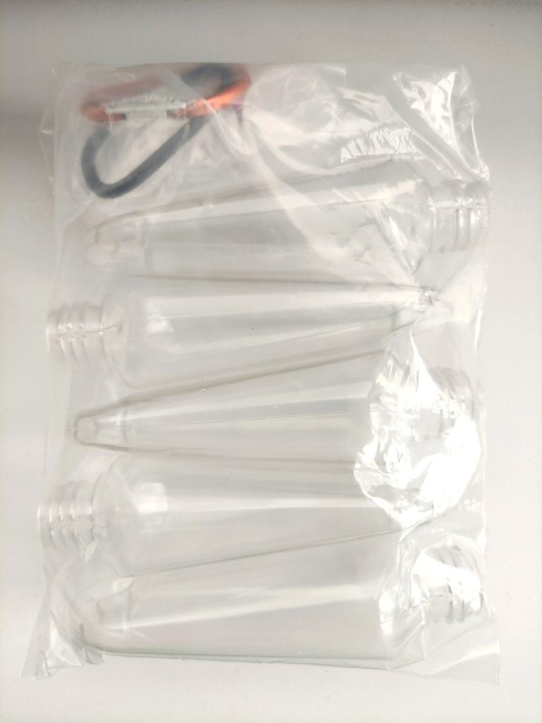 Silniční kontejnery. Set je ideálním řešením pro cestovatele, kteří chtějí mít po ruce vše potřebné pro pohodlný přesun. Díky kompaktní velikosti a pohodlnému designu lze sklenice snadno vzít s sebou. Moje sada obsahuje 5 50ml sklenic s karabinkami. Prodejce má jiný výběr objemu a množství.