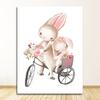 Pink Flowers Girl Baby Room Decor Cartoon Picture Bunny Poster Paintings Animals Nursery Wall Art Print Rabbit Canvas Painting
