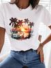 (Asian Size) Tee Top Women Print Lady Clothing Casual Leopard Beach Lovely Style Cute Short Sleeve Fashion Tshirt Female Graphic T-shirt