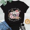 (Asijská velikost) Módní tisk Dopis z fotoaparátu Krásný sladký trend Roztomilá žena Neformální T Oblečení Neformální Dámské Top Grafické Tričko Tričko s krátkým rukávem