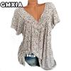 GMXIA Dámská móda Ležérní trička a topy s krátkým rukávem a výstřihem do V s potiskem puntíků