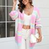 2023 Dámský podzimní a zimní ležérní kabát velký svetr patchworkový módní svetr