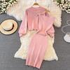Podzimní a zimní móda Krátký volný svetr s kulatým výstřihem Dvoudílná sada Dámské elastické přiléhavé tílko sukně Středně dlouhé šaty