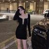 Sexy žena Sametová síť Příze Lucerna Rukáv Top Šaty Sukně A-Line Dlouhý rukáv Holá ramena Noční klub Bar Svatební párty