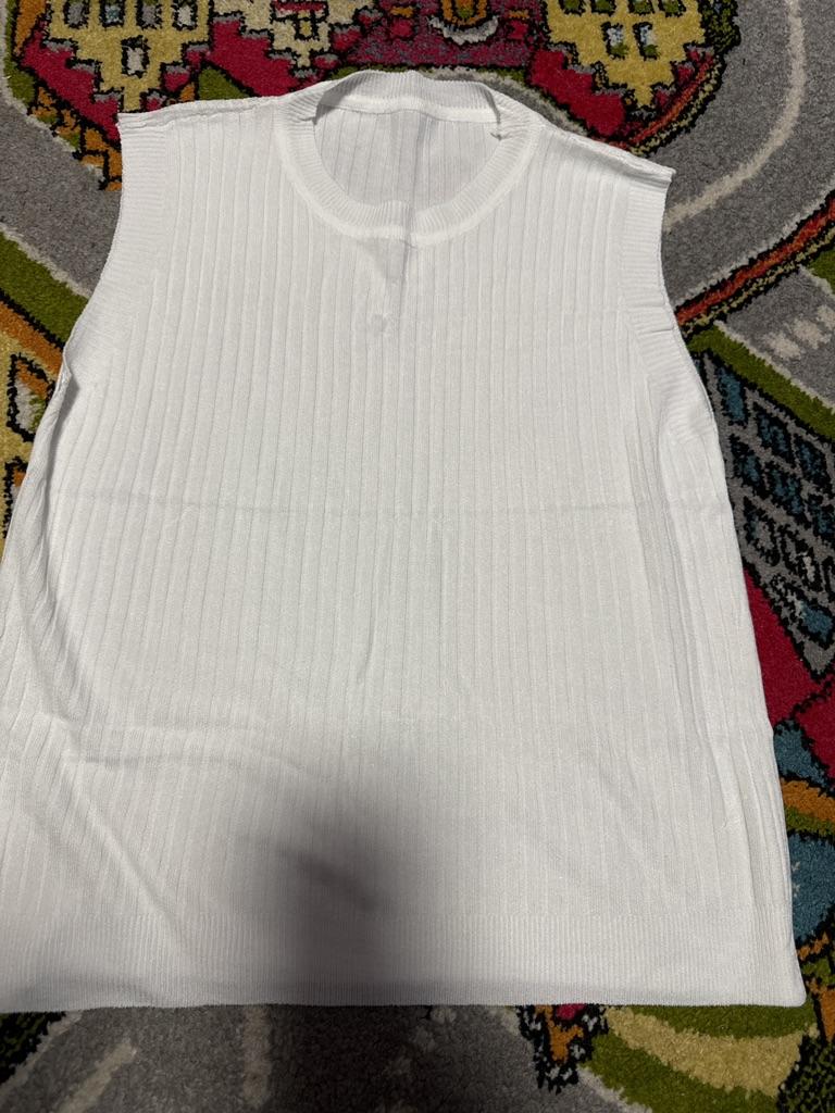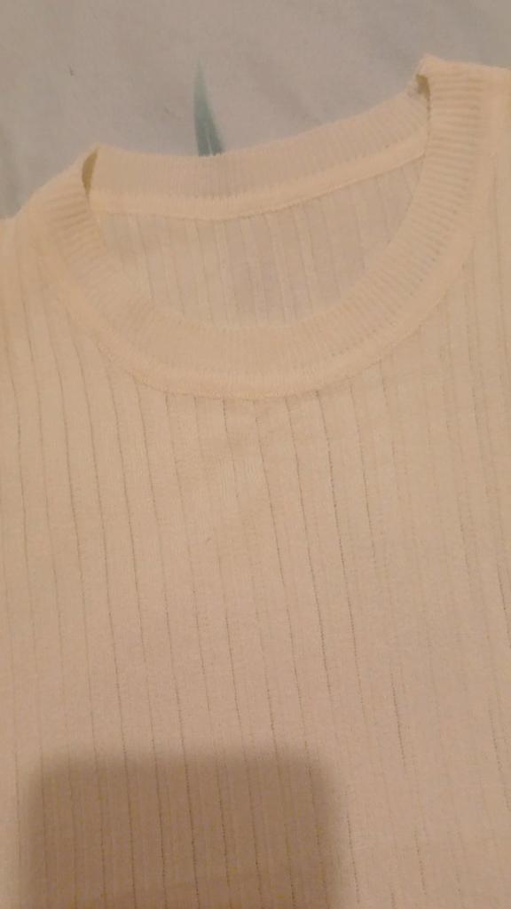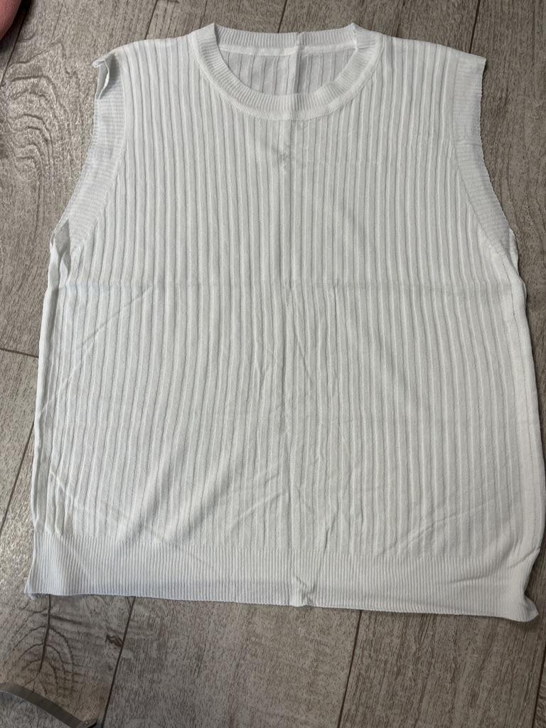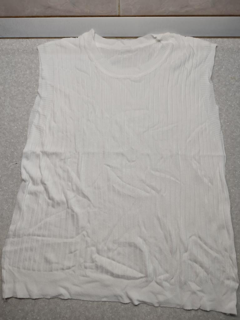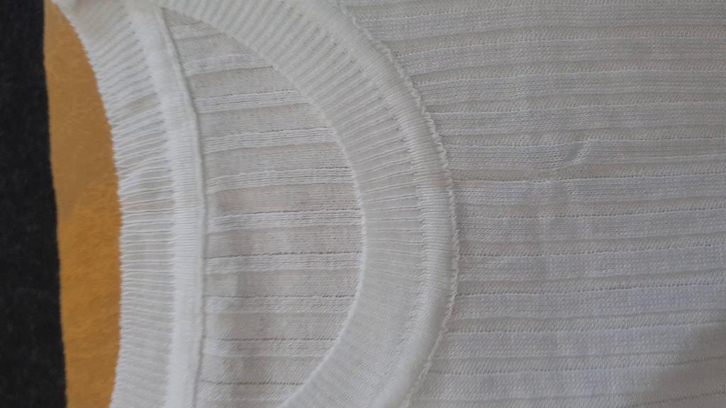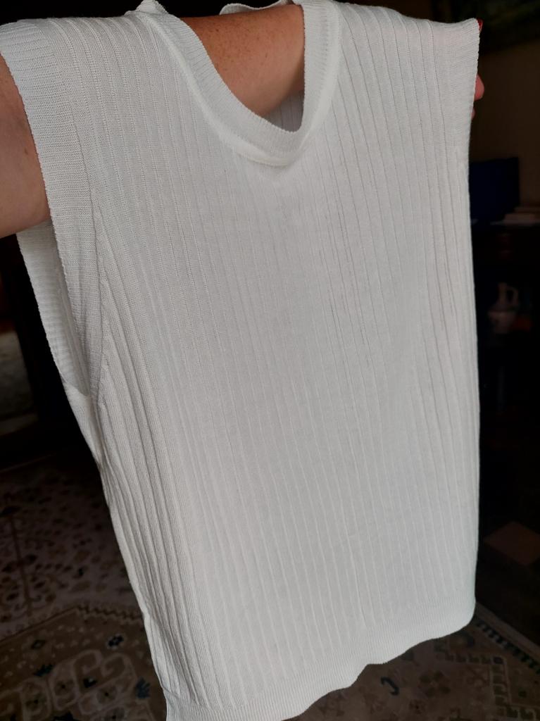 Spíš vesta než tričko, látka je průsvitná se širokým žebrováním