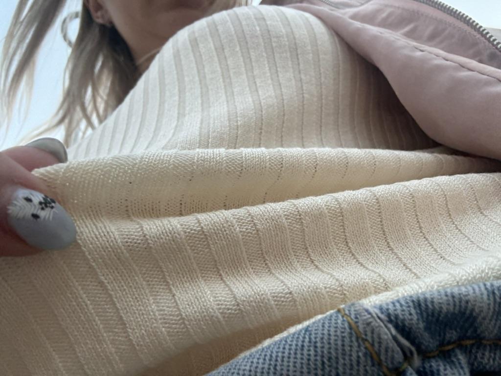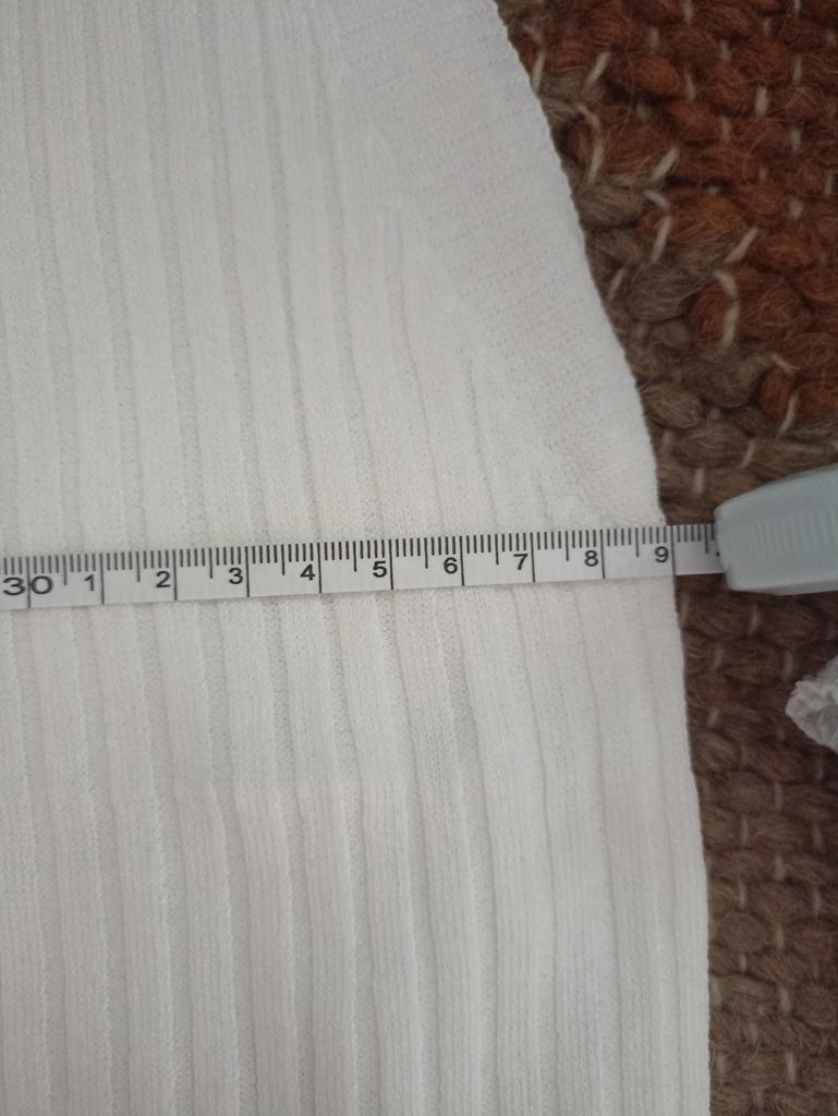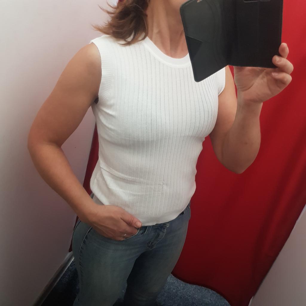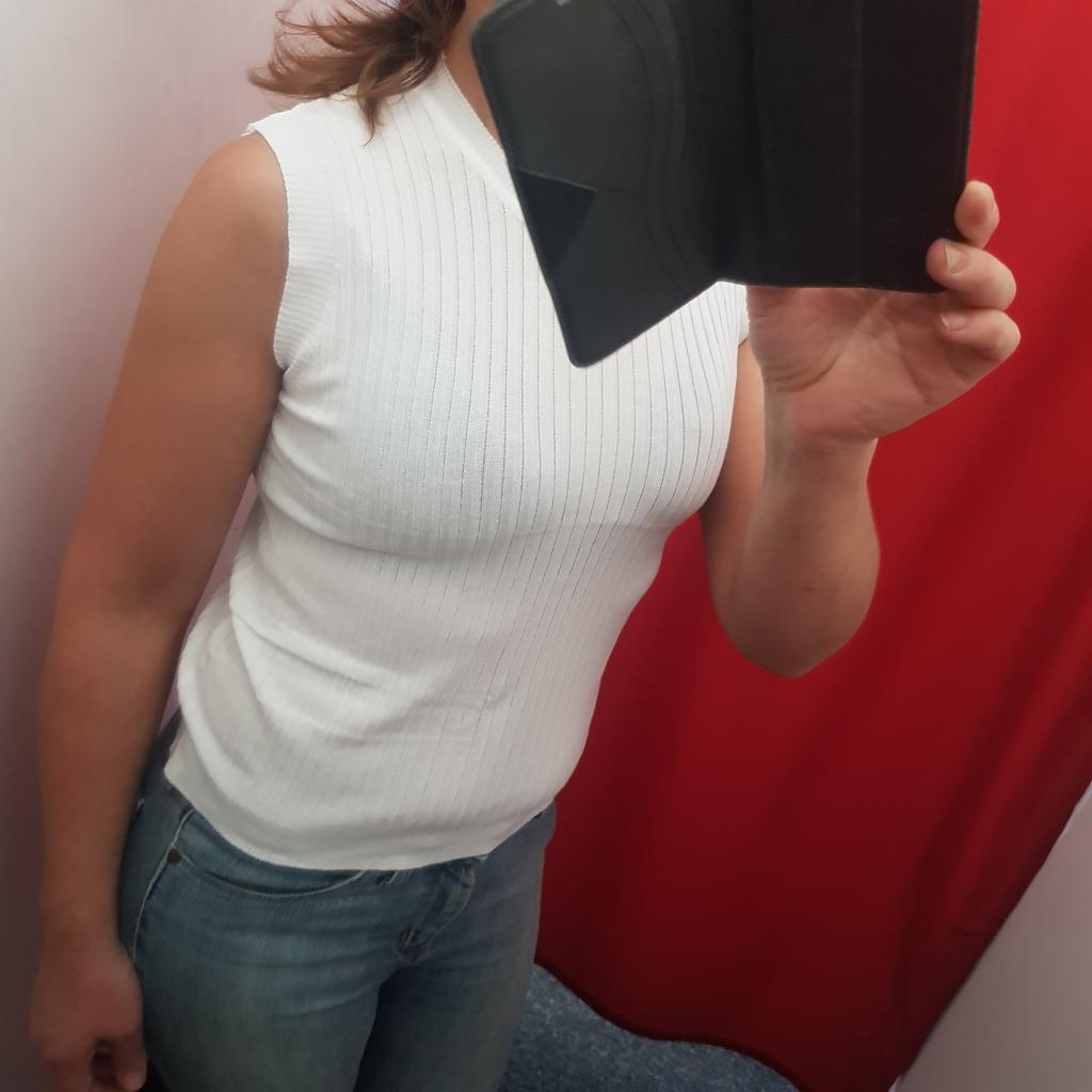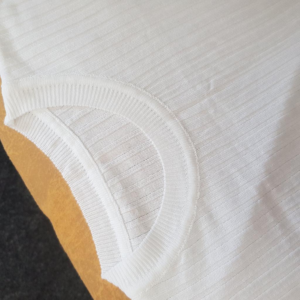 Spíš vesta než tričko, látka je průsvitná se širokým žebrováním