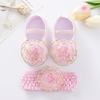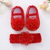 Boty pro novorozence Křest Holčička Krajkové Boty Batole Prewalker Roztomilé dětské měkké boty pro 0-18M s gumičkou do vlasů