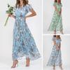 Maxi šaty s výstřihem do V Volán s krátkým rukávem Pas Těsný Vysoký Pas Splývavý lem Sladký květinový potisk Šifonové šaty Dámské oblečení