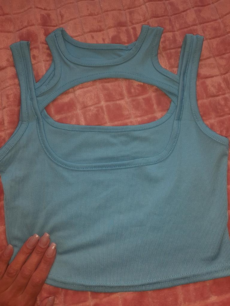 Tričko vypadá krásně, barva je sytá, ale střih je nějak zvláštní. Horní část je dusivá a spodní je příliš nízká, tzn. hrudník mimo košili. Musíme zkusit přišít ramínka spodního dílu, snad to opravíme.