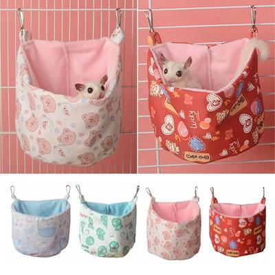 Roztomilá dvouvrstvá křeččí houpací síť Teplý útulný závěsný domeček do klece Fleece potisk Zesílený křeččí úkryt Klec Příslušenství ke kleci