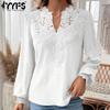 YYFS Dámská móda Ležérní jednobarevné halenky a košile s dlouhým rukávem a výstřihem do V