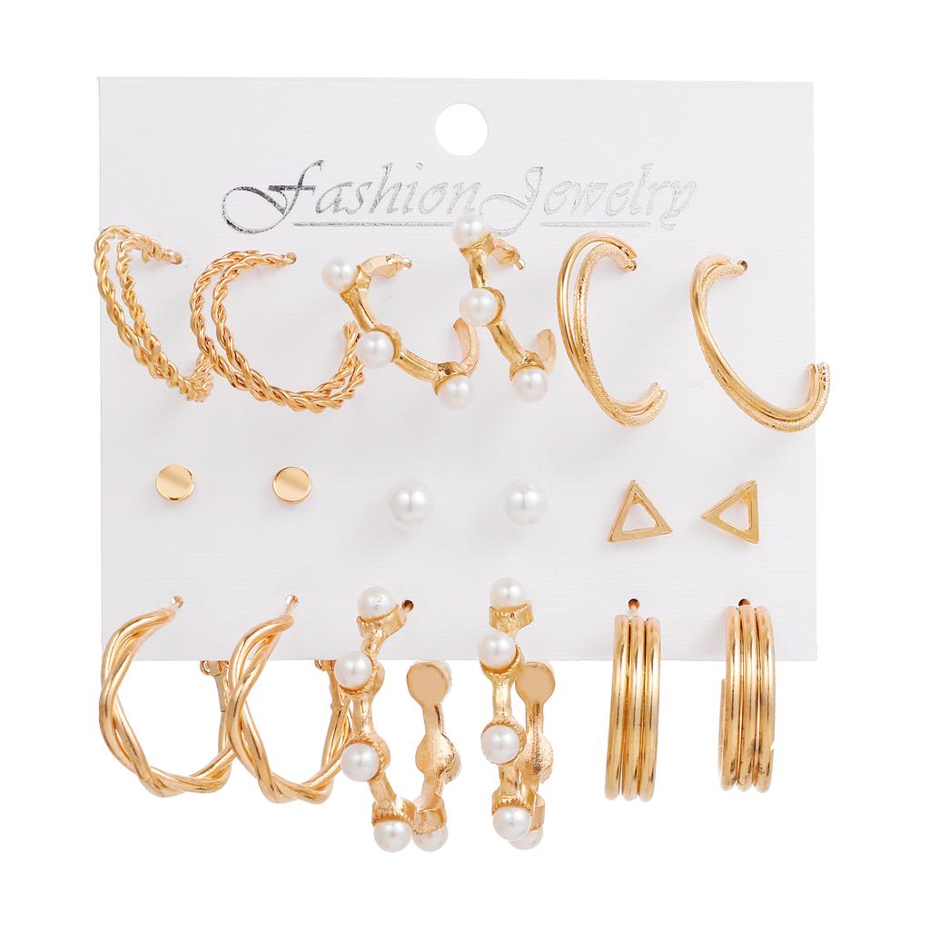 Punk Přehnaná sada 9dílných náušnic ve tvaru C v módě a elegantním temperamentu