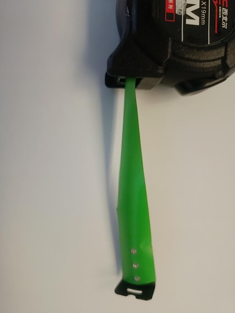 Bohužel, svinovací metr nefunguje. Tlačítko pro svinutí pásky nefunguje. A také není fluorescenční.