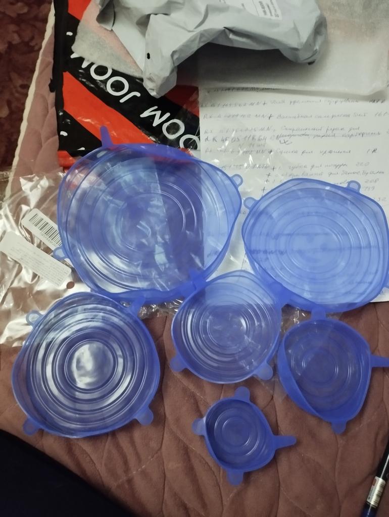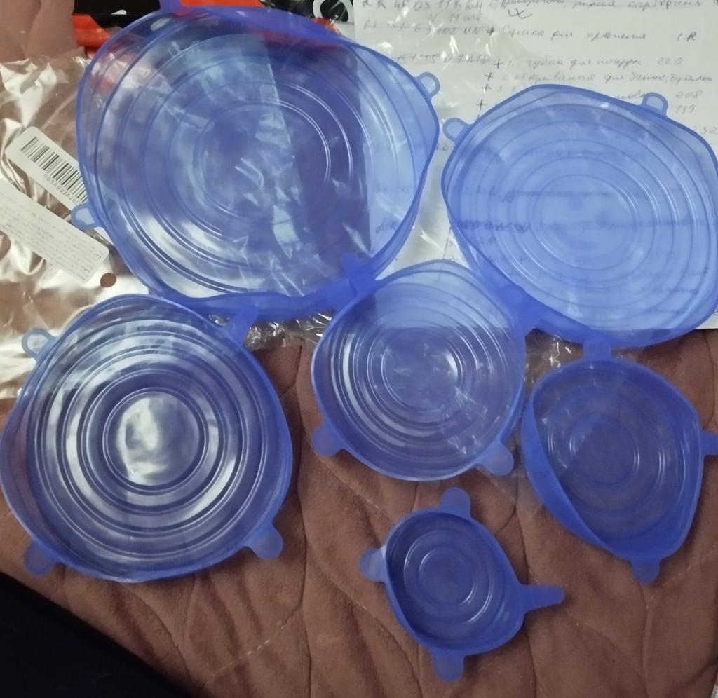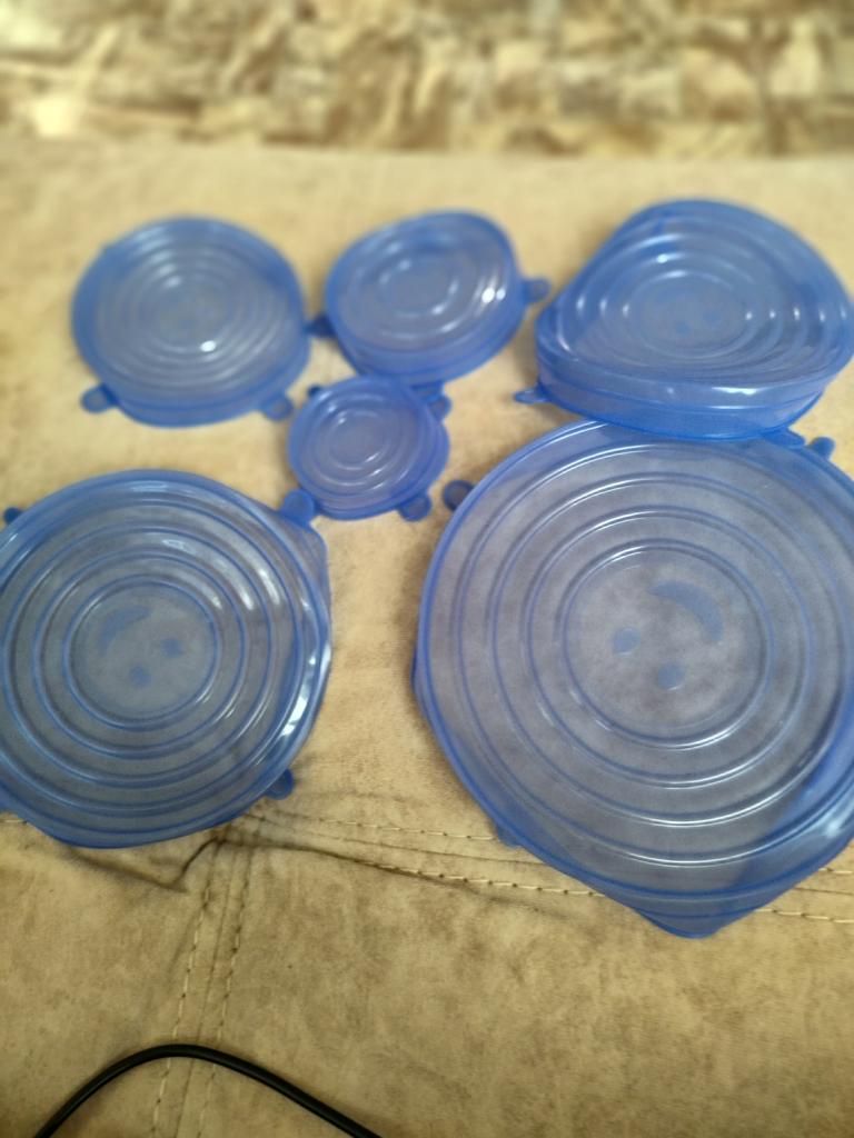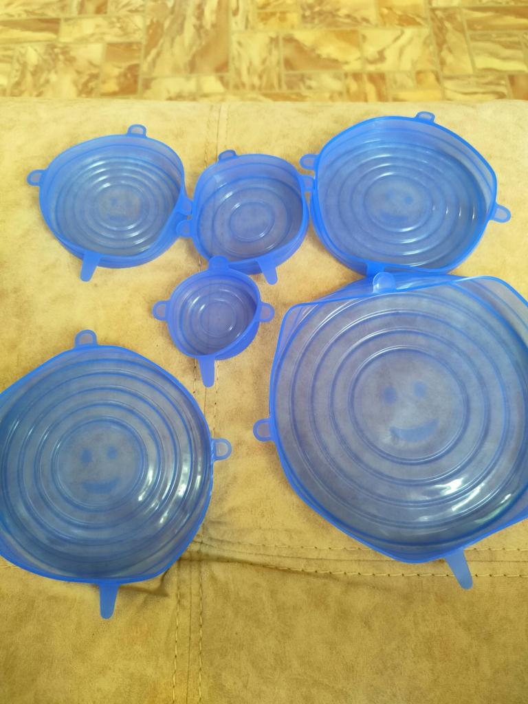 6 silikonových víček různých velikostí. Dobře se natahují. Na nádobí drží pevně. Pohodlné k použití.