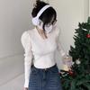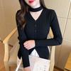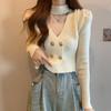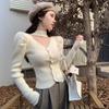 Korejská módní ohlávka Cardigan s výstřihem do V Dámské Pletené topy Podzim Zima 2023 Francouzský styl Oblečení s nabíraným rukávem 28990
