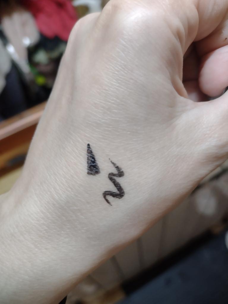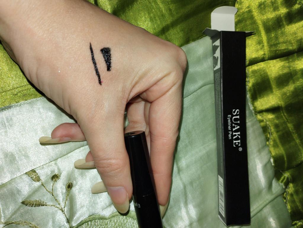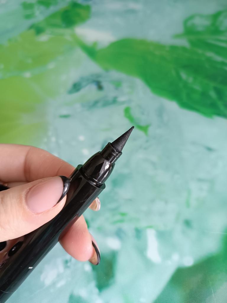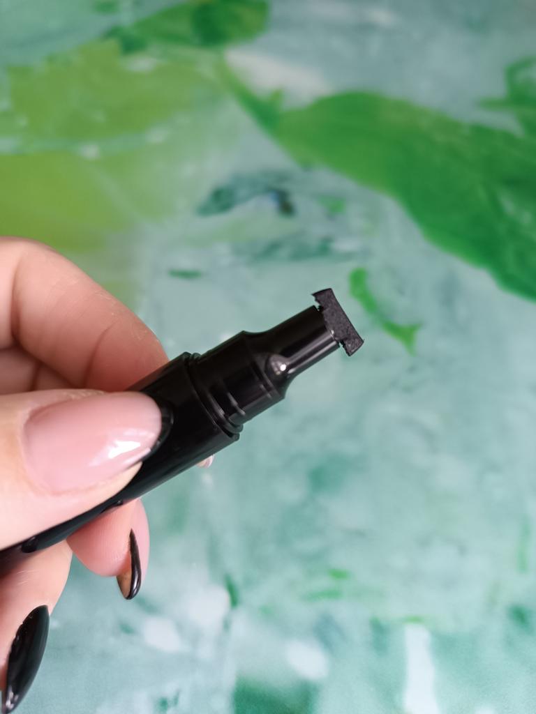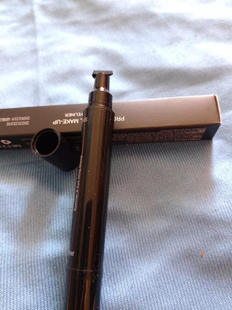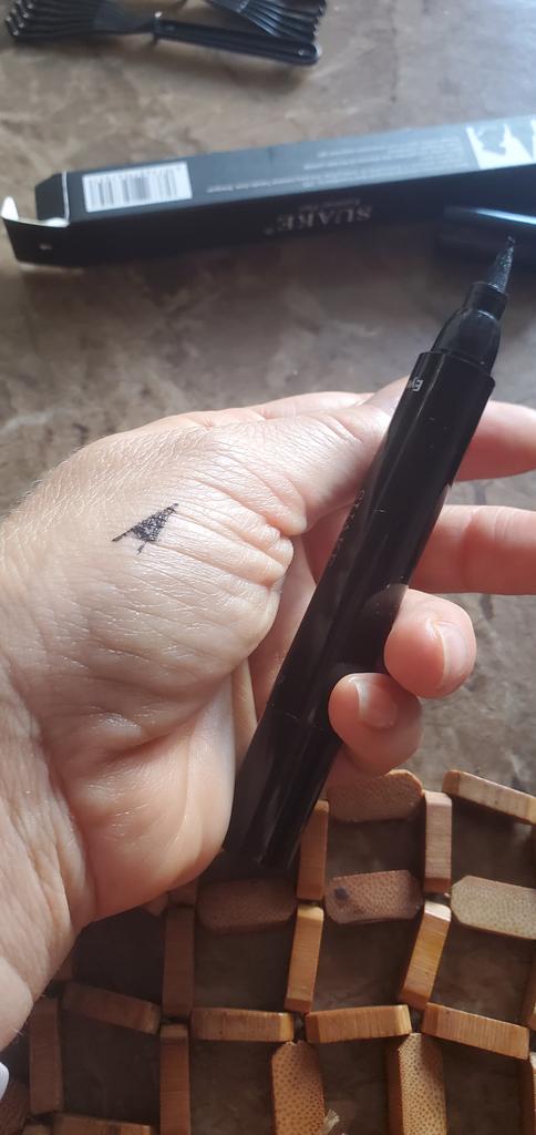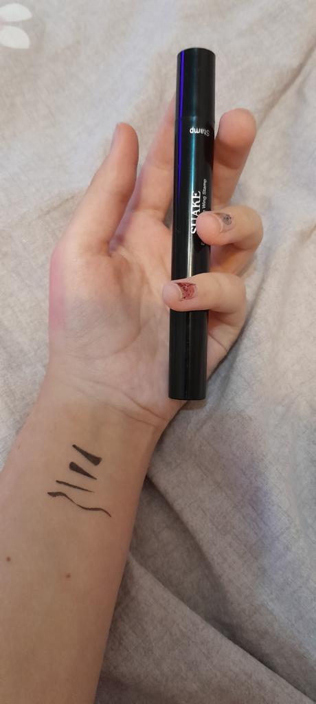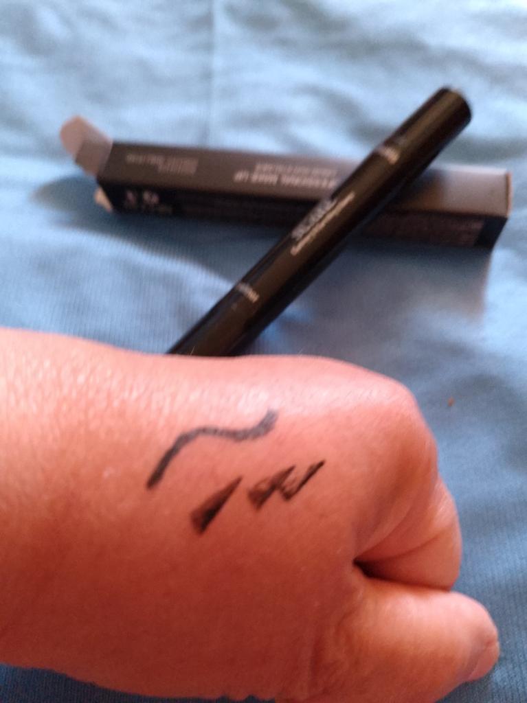 Pěkná tužka na oči. Zkusil jsem to na ruce. Razítko klade úhlednou šipku a kreslí štětec s tenkým koncem.