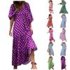 Dámské letní maxi šaty s výstřihem do V, květinová Přímořská dovolená Ležérní Volné